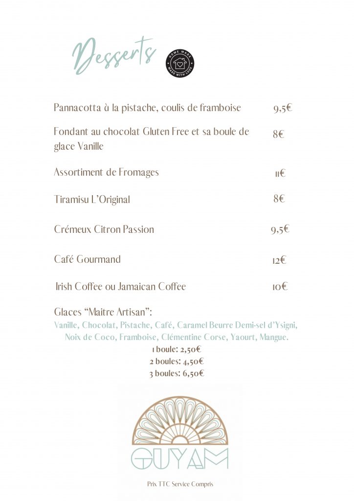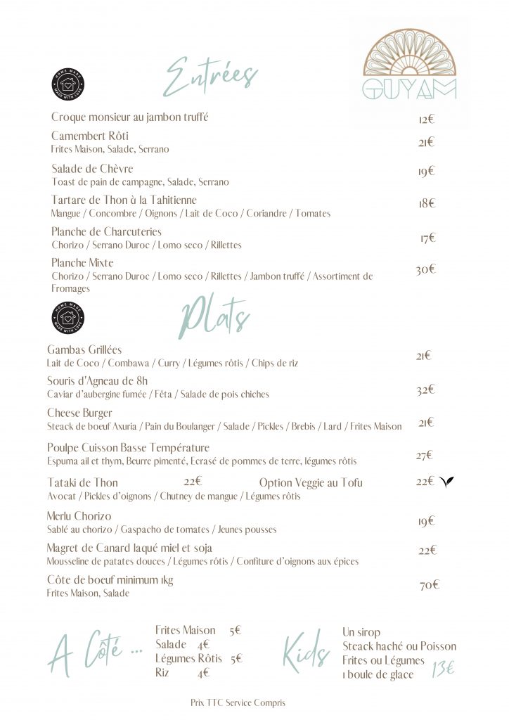 Notre carte est évolutive selon les saisons et l'affluence, il se peut que des modifications soient faites lors de votre venue.